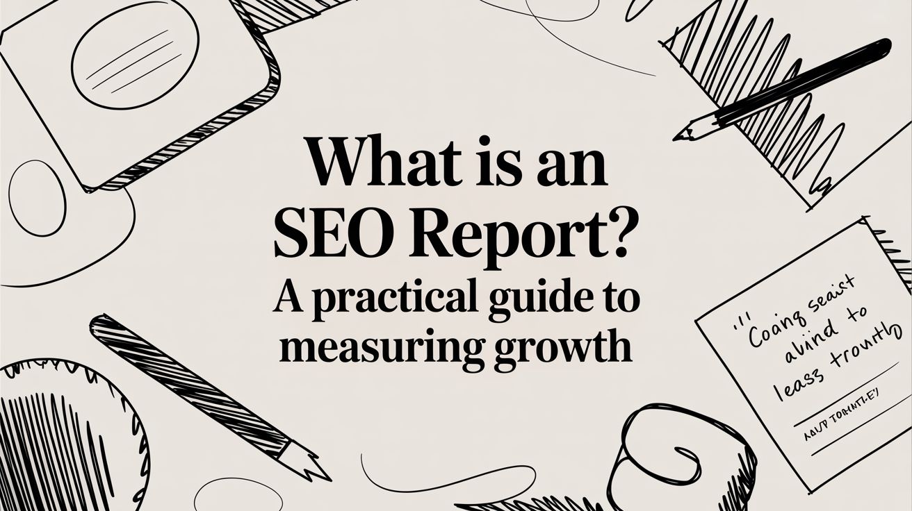 An SEO report is your digital marketing scoreboard, but it's also your business's growth story. It’s a document that cuts through the noise of complex performance data and tells a clear narrative about your website's health online. At its core, it tracks crucial metrics like organic traffic, keyword rankings, and conversions to show you exactly how your investment in search engine optimization, local search (GEO), and even answer engine optimization (AEO) is paying off.